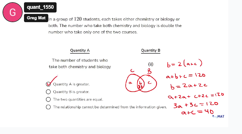 For this question, I have done in this manner. C=Chemistry, B=Biology, A=Both