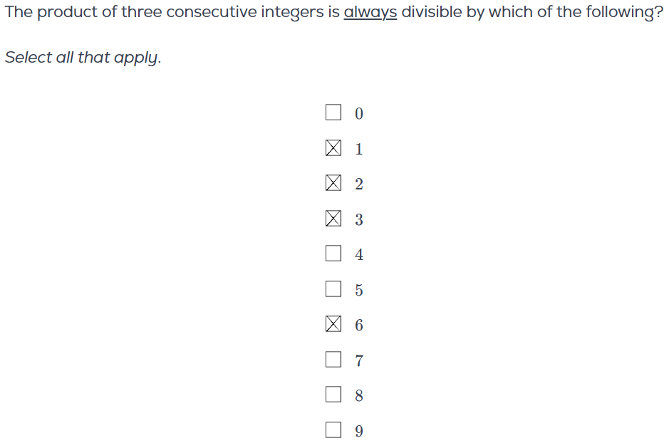 It doesn’t say positive integers. So can’t we take -1, 0, 1 as three consecutive integers? And then the product will be 0.