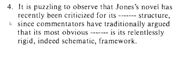 While attempting this question in Old GRE Walkthrough videos, Greg mentions that the first blank cannot be predicted without reading the whole sentence. But can we not apply math strategy here right at the start? “It is puzzling‘ creates a contrast (-); Jones’s novel has been criticized has a negative connotation (-); so shouldn’t the next idea (and therefore the blank) be positive?