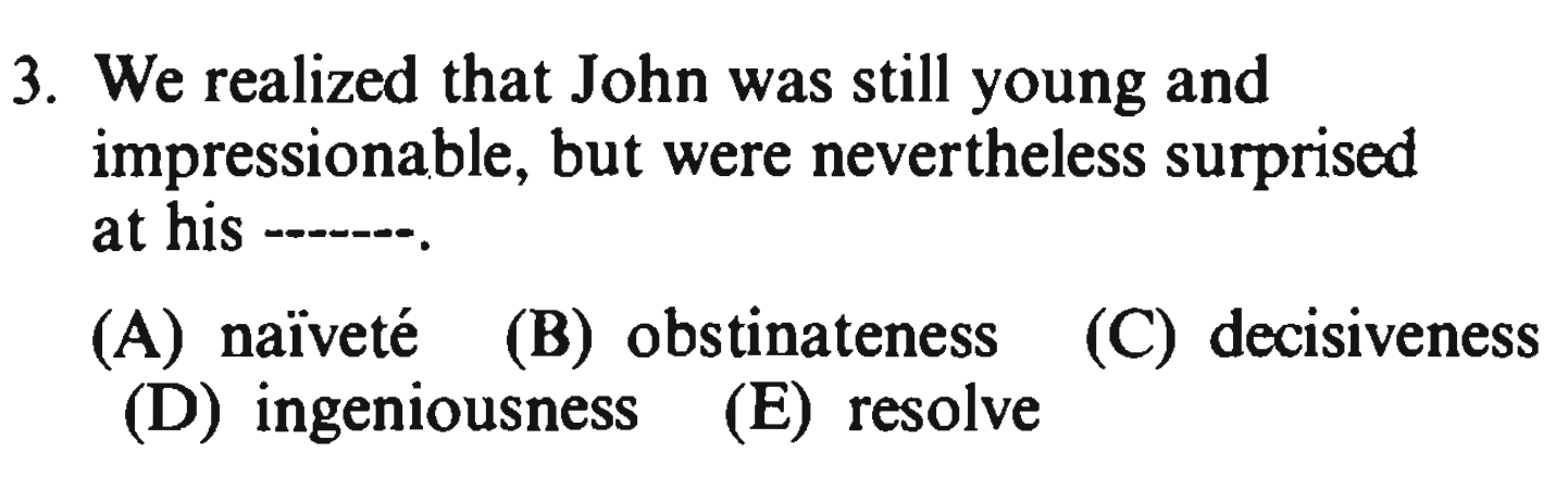 For #3, it’s a shift from bad to worse. Like if I said, “I thought Pizza Hut was bad, but then I tried Domino’s, which was even worse”. There isn’t really a “tell” here - I have to look at the choices since I might predict “maturity”. Also, “decisiveness” isn’t a good contrast with young and impressionable, so if this was a normal contrast, that wouldn’t work - we would need something like “maturity”.