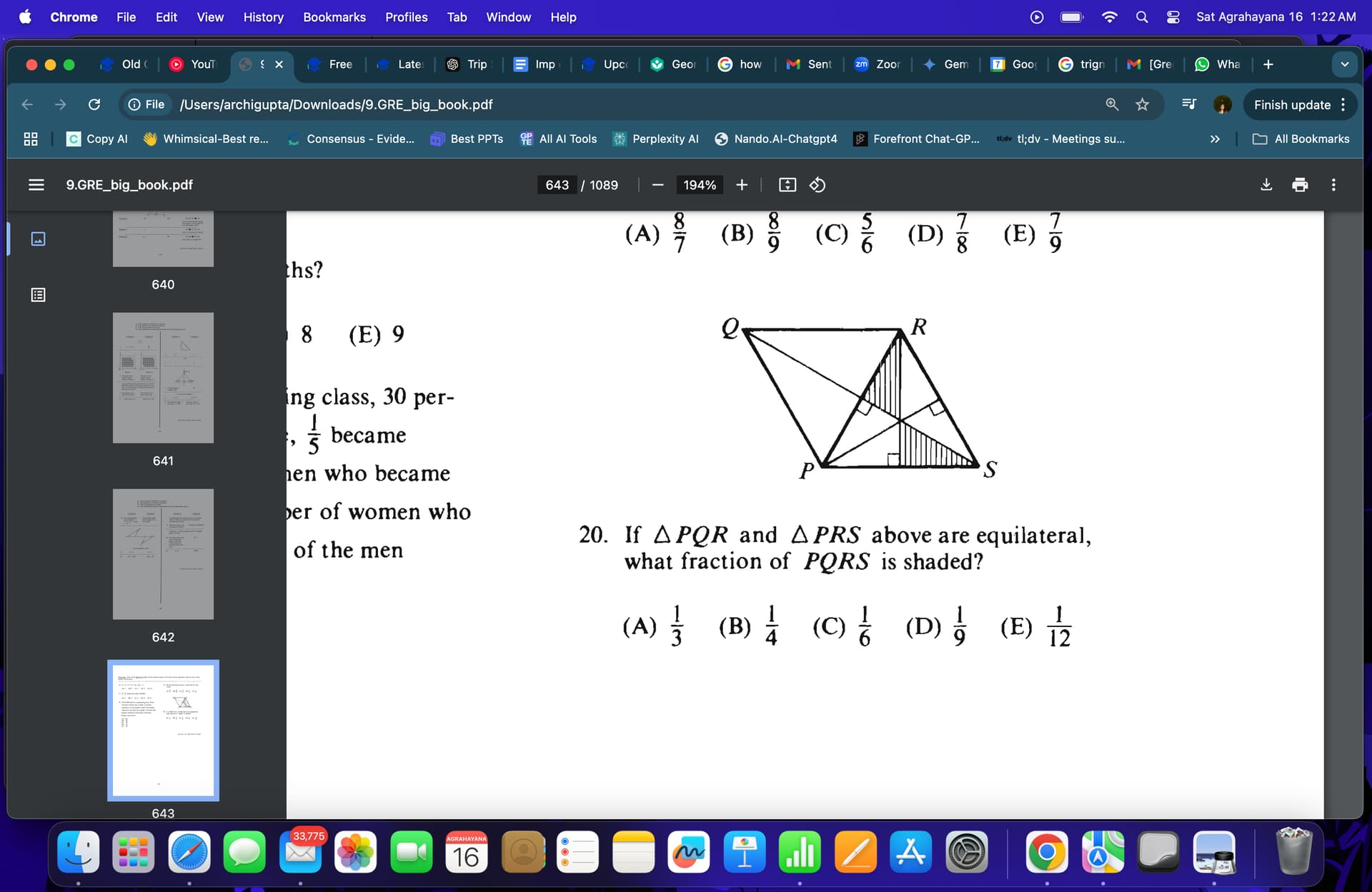 Since PRS is an equilateral triangle if we try to find the area of all the small triangles present inside it (including shaded ones) they would be equal. So, they are all symmetrical. As a result,
