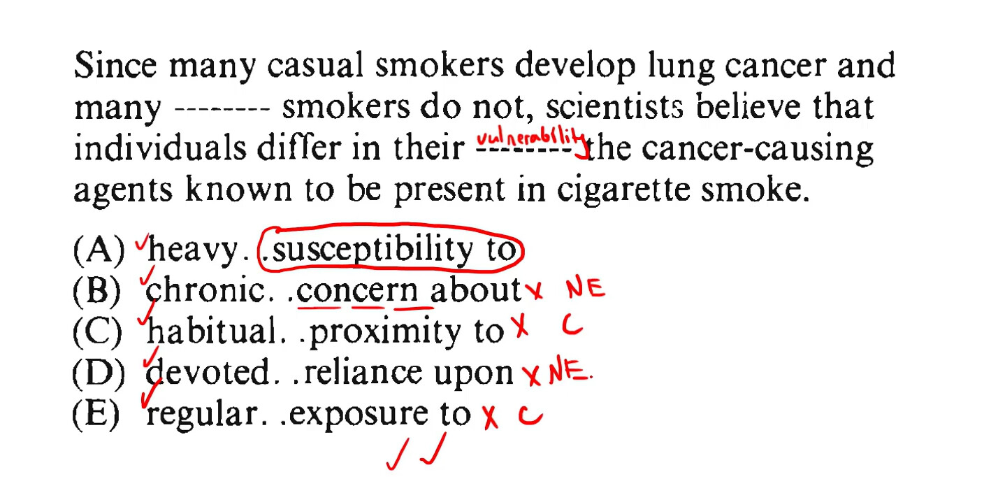 If they are relied on the cancer causing agents, which means casual smokers would have it less and the chain smokers would have it more, the results as presented in the first part of the sentence would be exactly opposite. Is this the valid way of looking at it as a CE rather than NE?