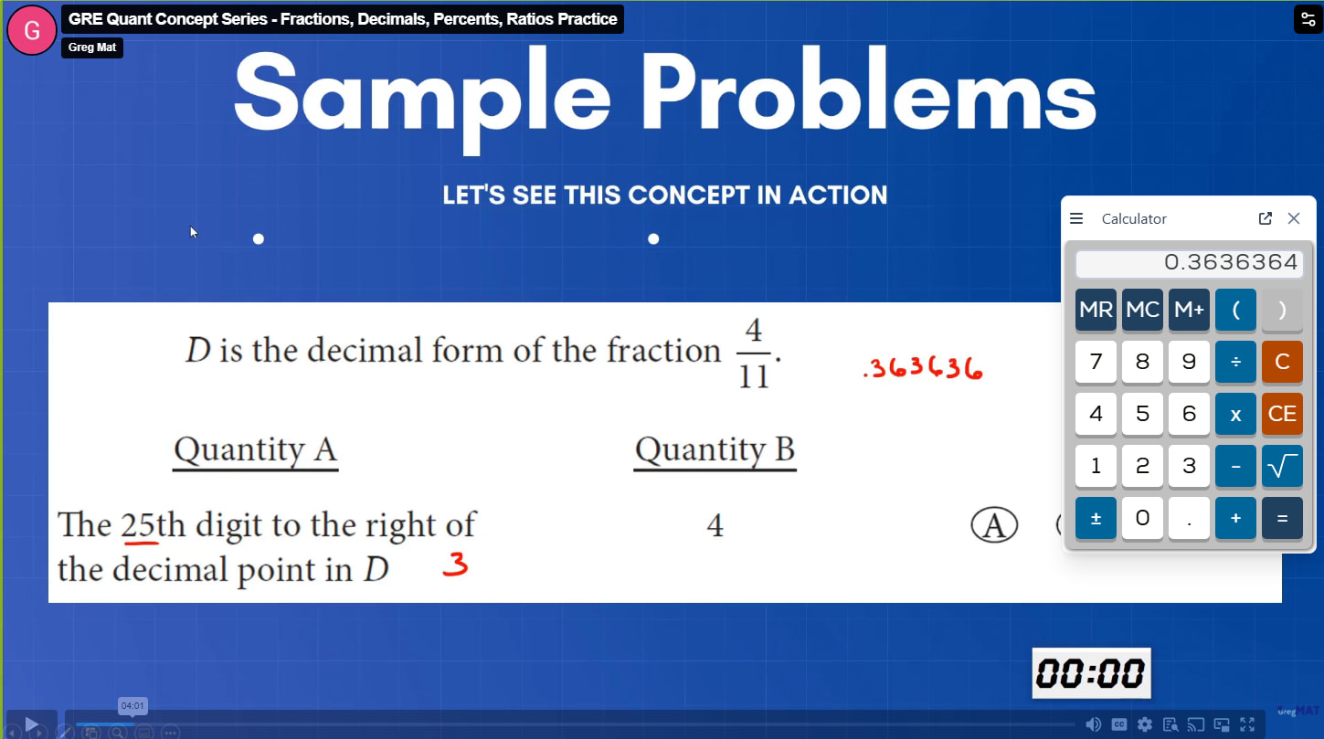 I understand the answer and how it got there. The issue is when typing in a calculator, I get a terminated number that ends at 4. It is safe to assume that when i see an obvious repeating series of number that i can assume it follows that sequence up to the number the question is presenting? If I were to base it off the calculator only, I would assume the numbers stopped at 7 digits to the right of the decimal.