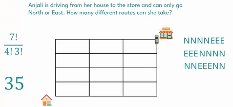 It’s not a “choices” problem, its an arrangement problem. How many ways can we arrange NNNNEEE (or in other words, how many different ways can you go north 4 times and right 3 times).