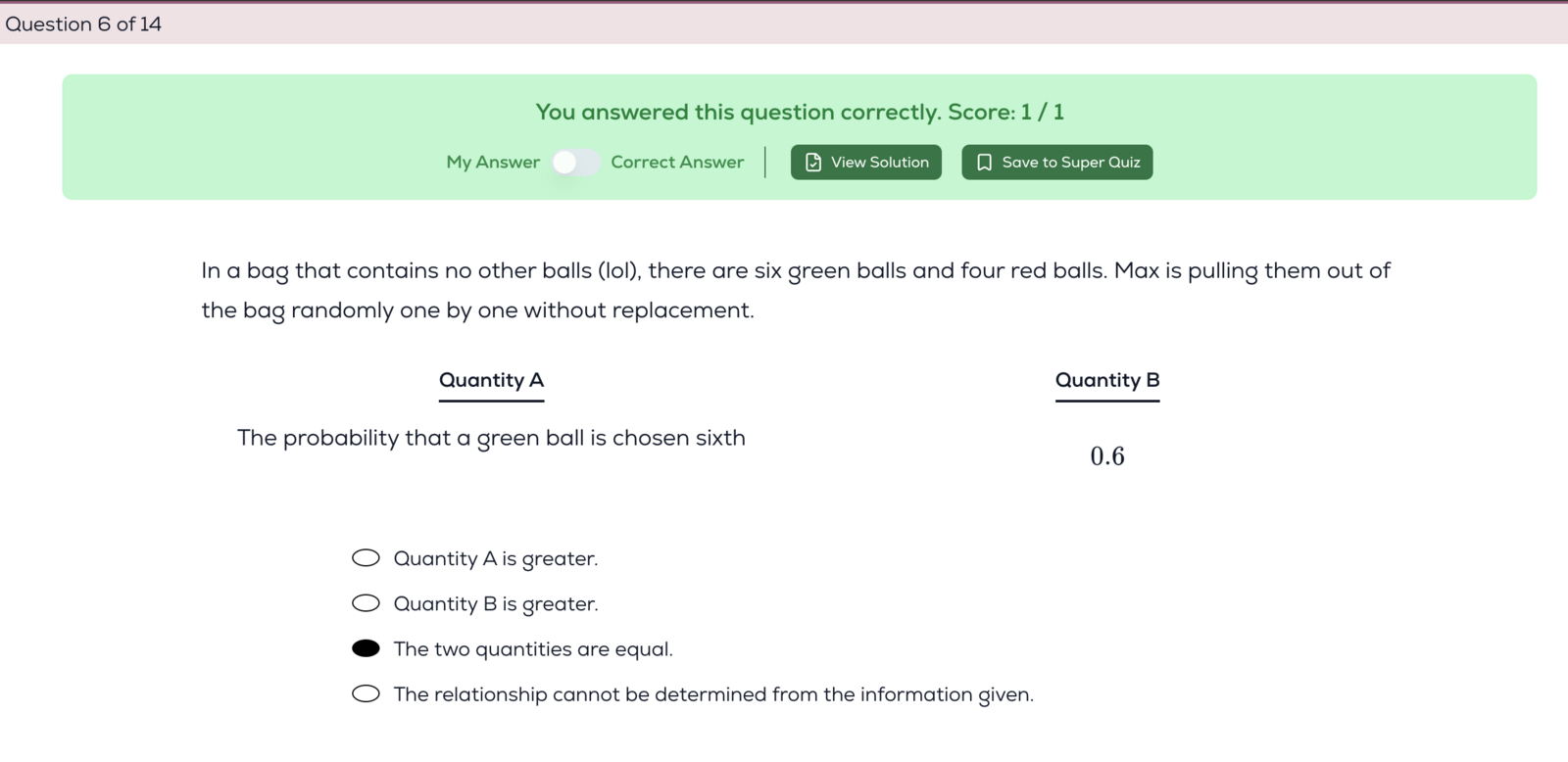 (replacement does not affect the probability of the draw, which is the concept I imagined should be tested in both of these, but it only tested in the ball question)