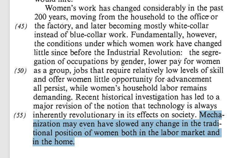 So this passage talks about widely held assumption on the role of automation and technology that played its part in woman’s life….