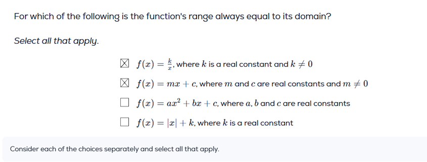 Range: All real numbers (plot any non-horizontal (m is nonzero) and non-vertical line (not a function) and you will see that any y value can be achieved)