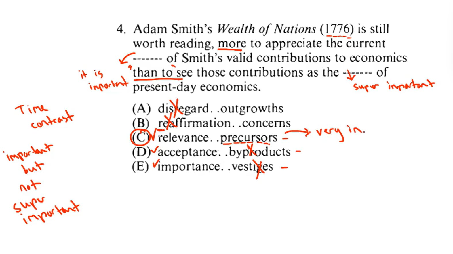 - I wanted to confirm, that Greg is using the “extreme word” strategy here right? I had earlier predicted a negative word in the blank, something like “not important” given the logic of the sentence.