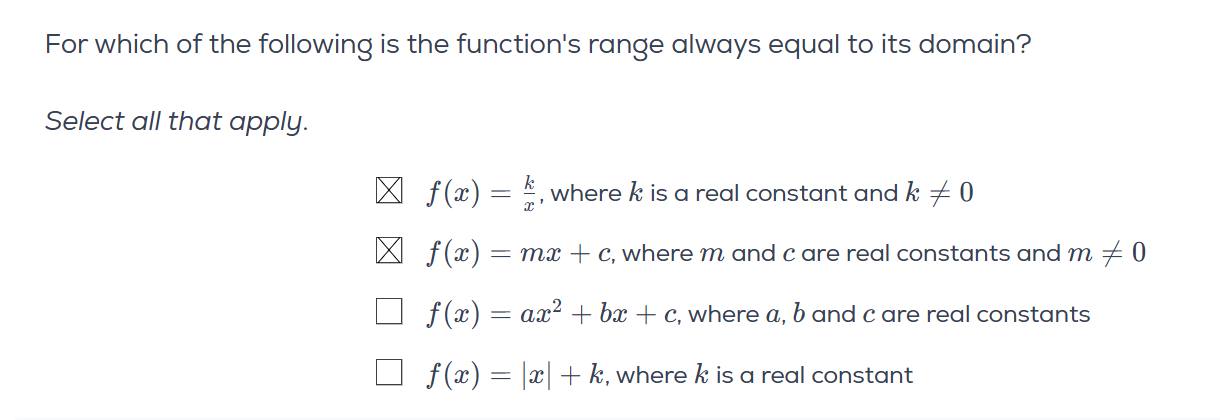 I am not sure of thr logic of the last option- I think domain=range, because: