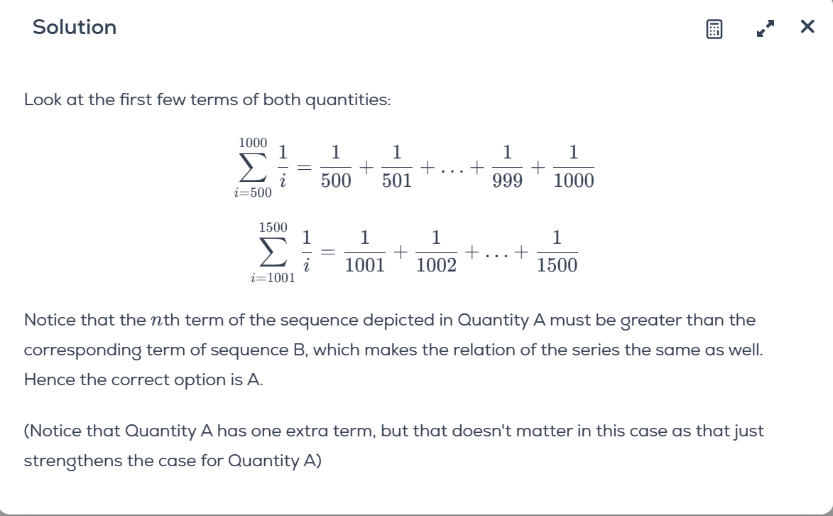 Similarly, for quantity B, it’s telling you to count up from i = 1001 to i = 1500 (inclusive).