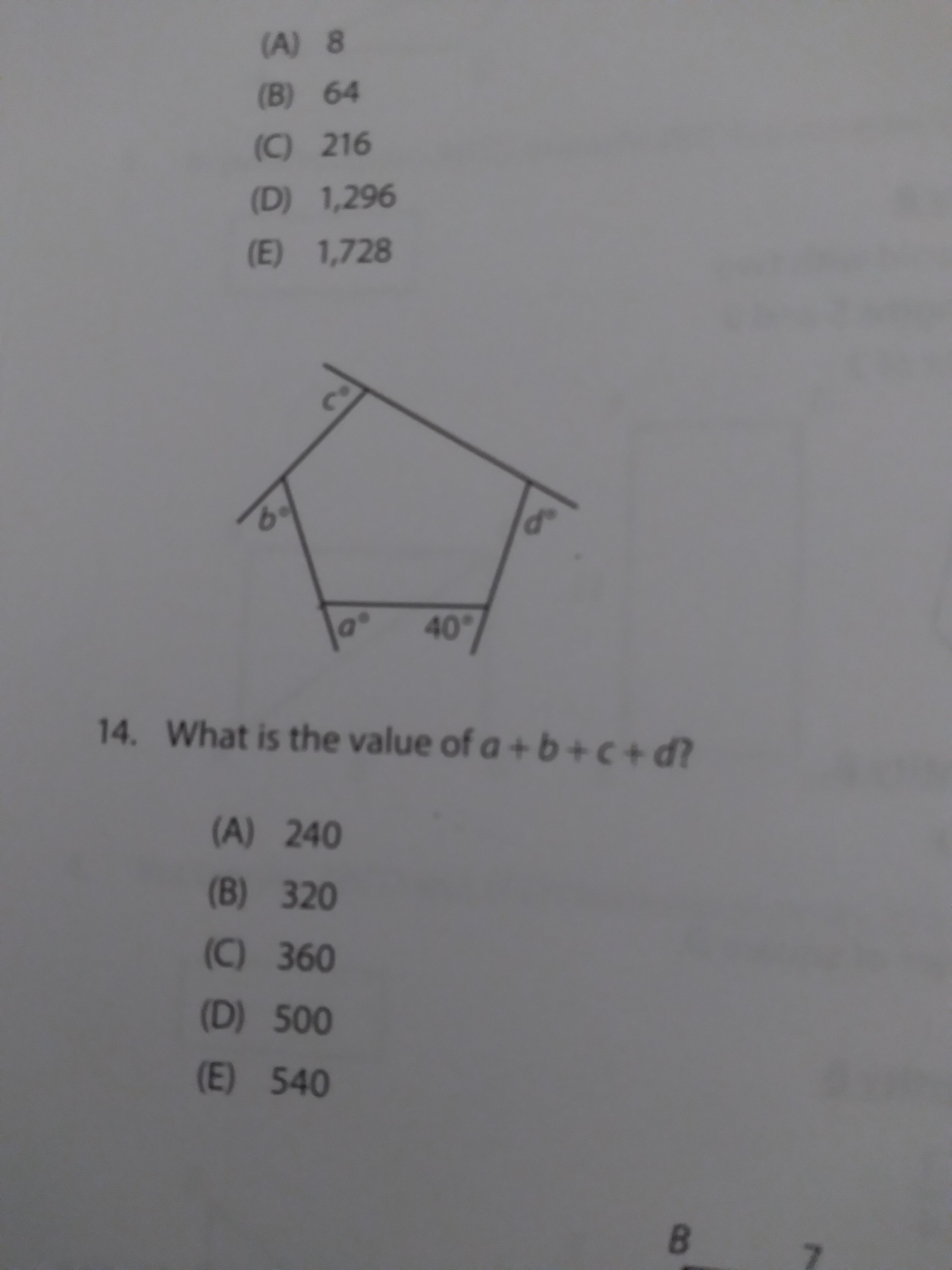 no, it adds up to 360. So in this question, since one angle has 40 degrees, the remaining ones have to add up to 320