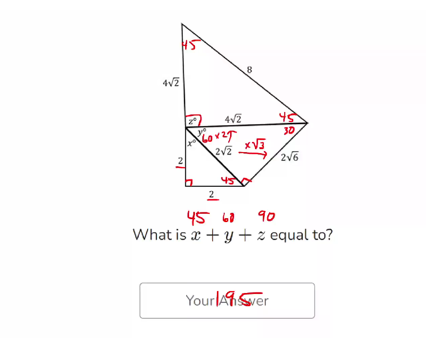 Hi, I think I am missing a basic point here, What can’t I assume that x+y+z = 180? They are on a straight line. Isnt’t it?