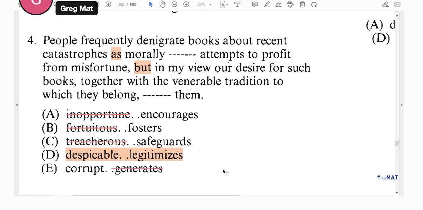 Also even for the first blank option D) makes more sense. morally despicable fits better than morally disloyal (treacherous)