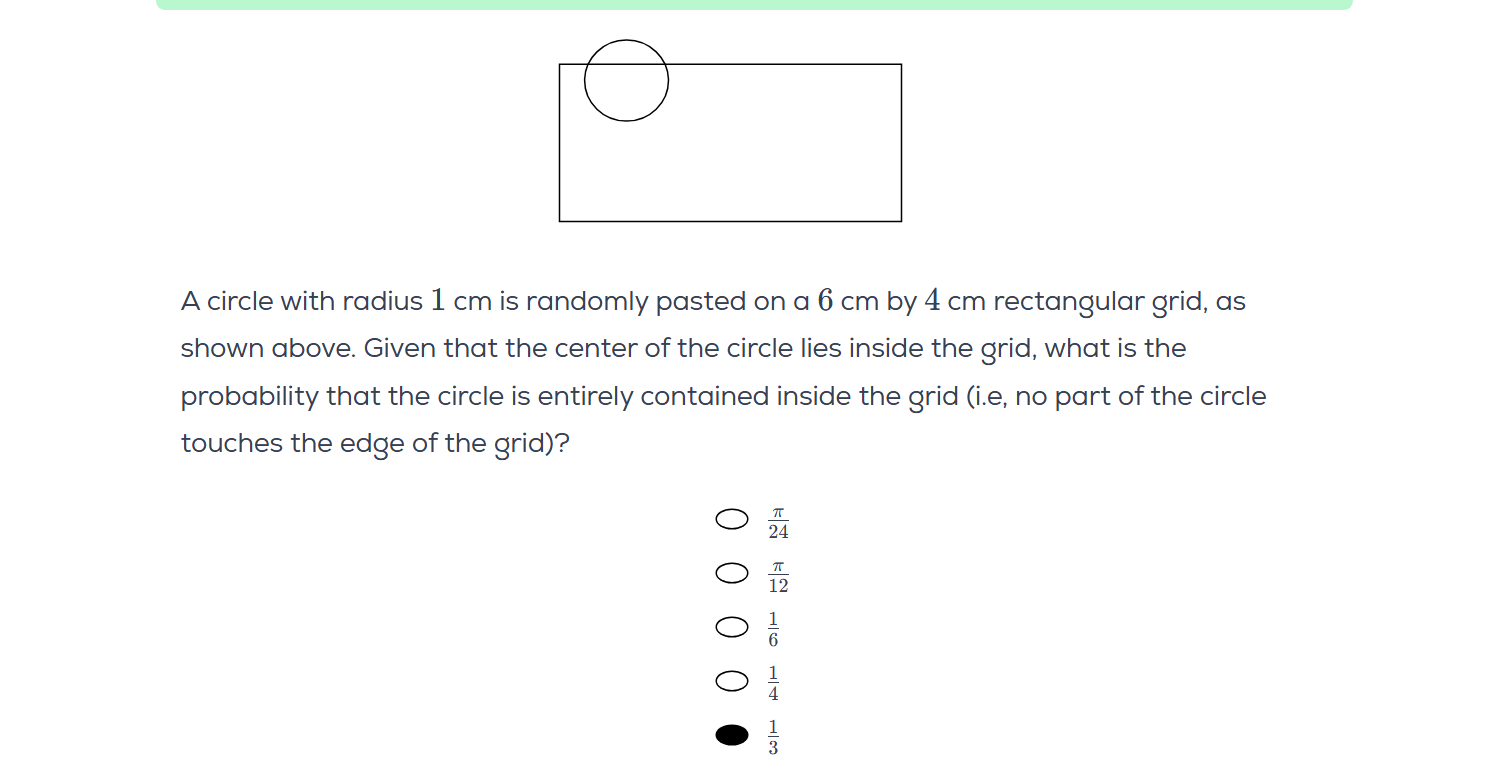 Formally, your answer will always be \frac{1}{\pi r^2}, while the correct answer for a circle with radius r and rectangle dimensions p and q respectively is