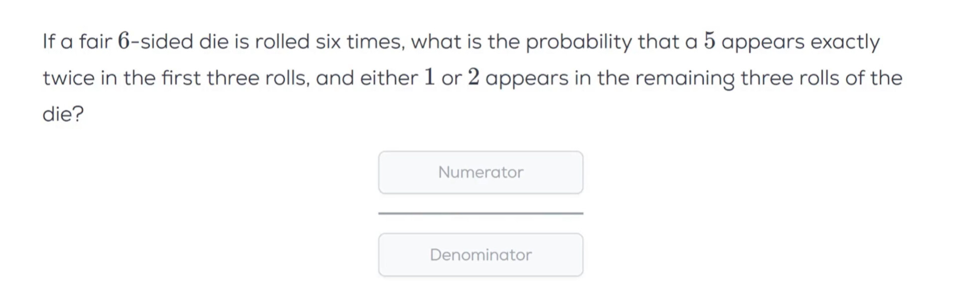 @user2358 the reason for multiplying by 3 in the first scenario is that there are actually three distinct ways we can get two 5’s: