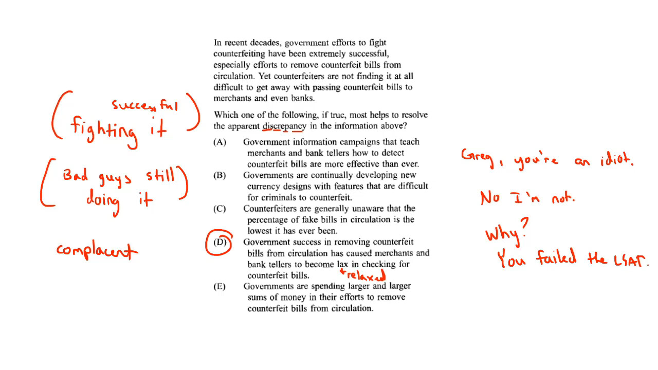 ah, that’s the issue. The discrepancy, or paradox, or illogical situation, for this question type, is always two things that seemingly cannot both be true.