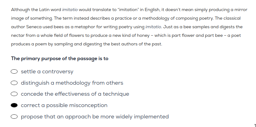 In the above question if there was another option that said “to draw similarities between bees and poets” or something similar would it have been the right answer?