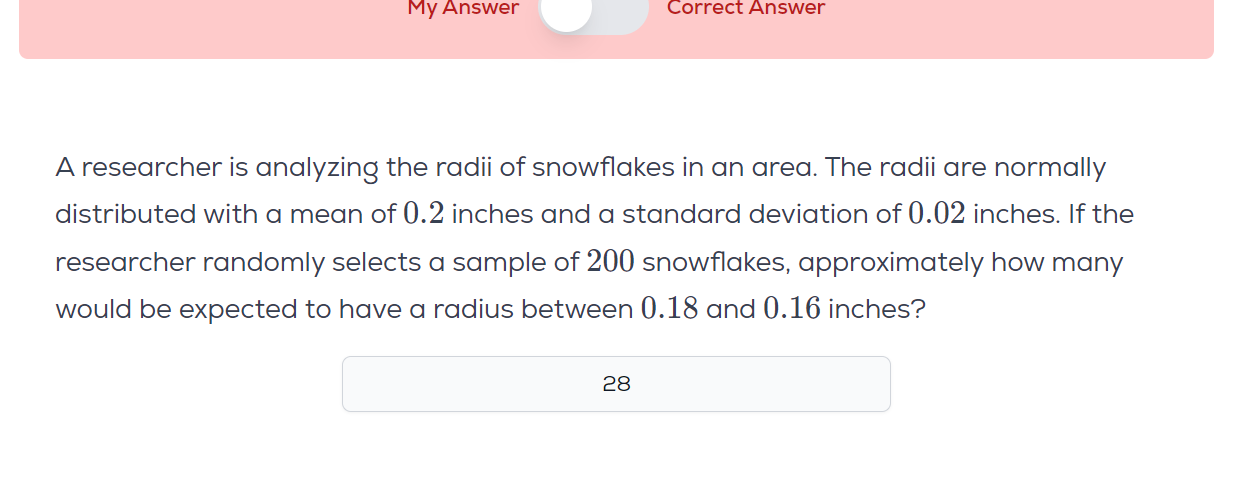 For this question, I want to ask why 28 is not correct because 0.16 is the m-2d value and 0.18 is m-d value and the area enclosed by them is 14% and 14% of 200 is 28. Could you explain where am I going wrong?