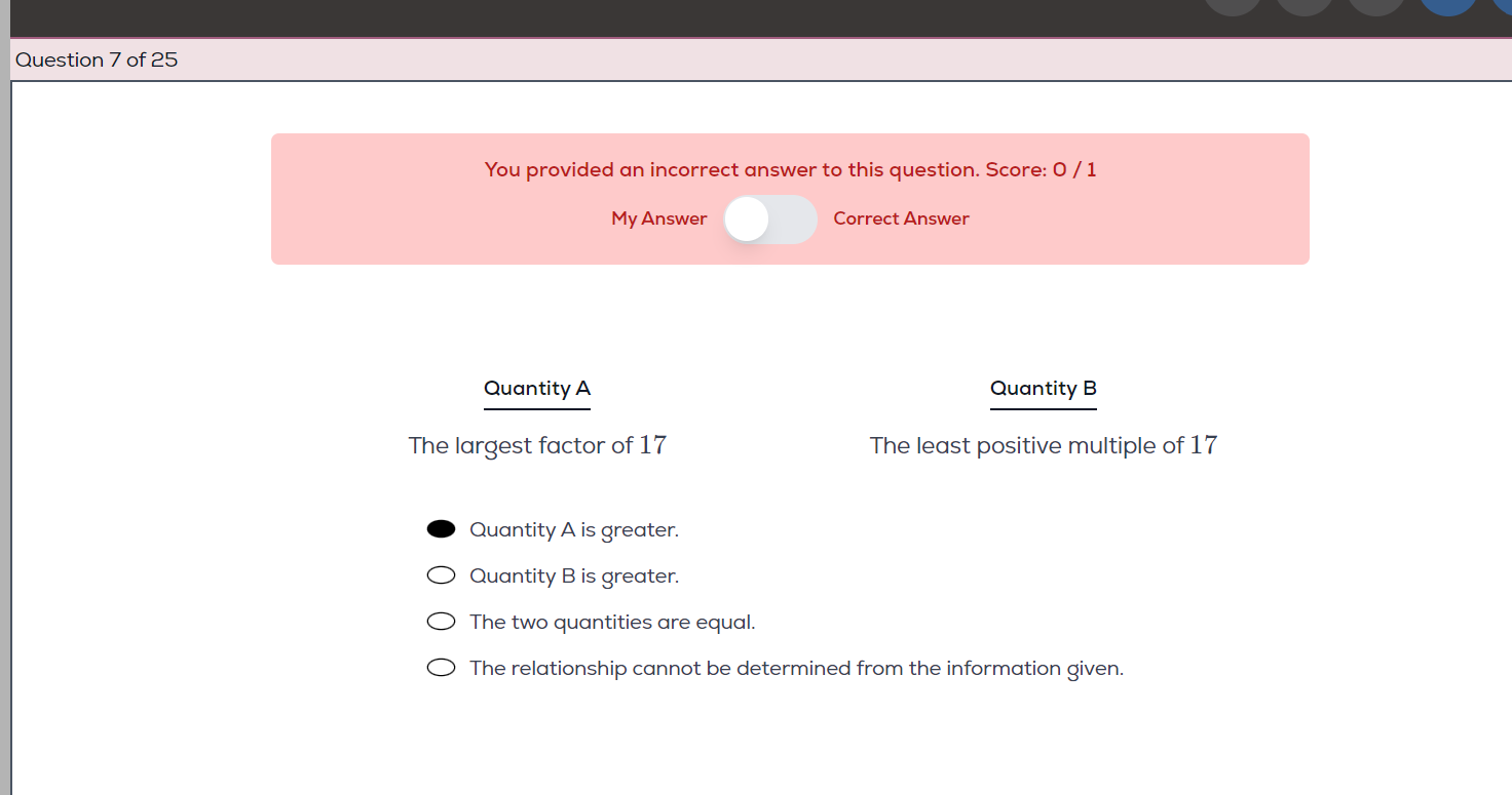 hey! so 1 is not a multiple of every number but it is a factor of every number. 1 is a multiple of 1 and -1 only. the least multiple could be 0, but they have mentioned positive and zero is not positive nor negative, hence the least multiple would be 17 itself