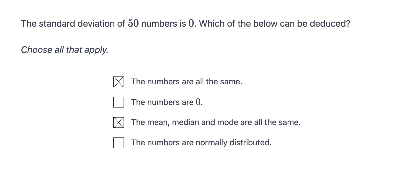 Why the numbers can’t be 0. Since all 50 has to be a same number, If all the 50 numbers are 0 the SD would be 0 as well, right, that makes options B correct. What am I missing?