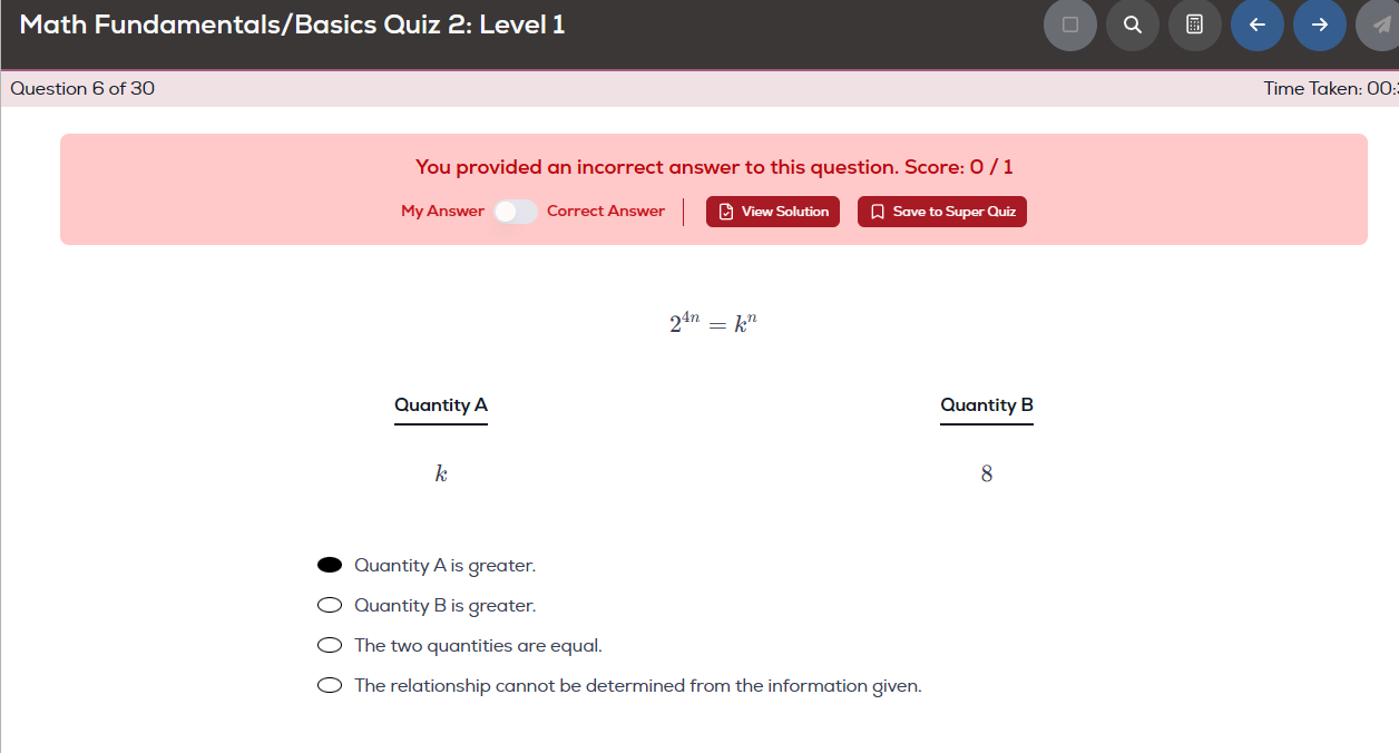 Math Fundamentals/Basics Quiz 2: Level 1 (Q:6)