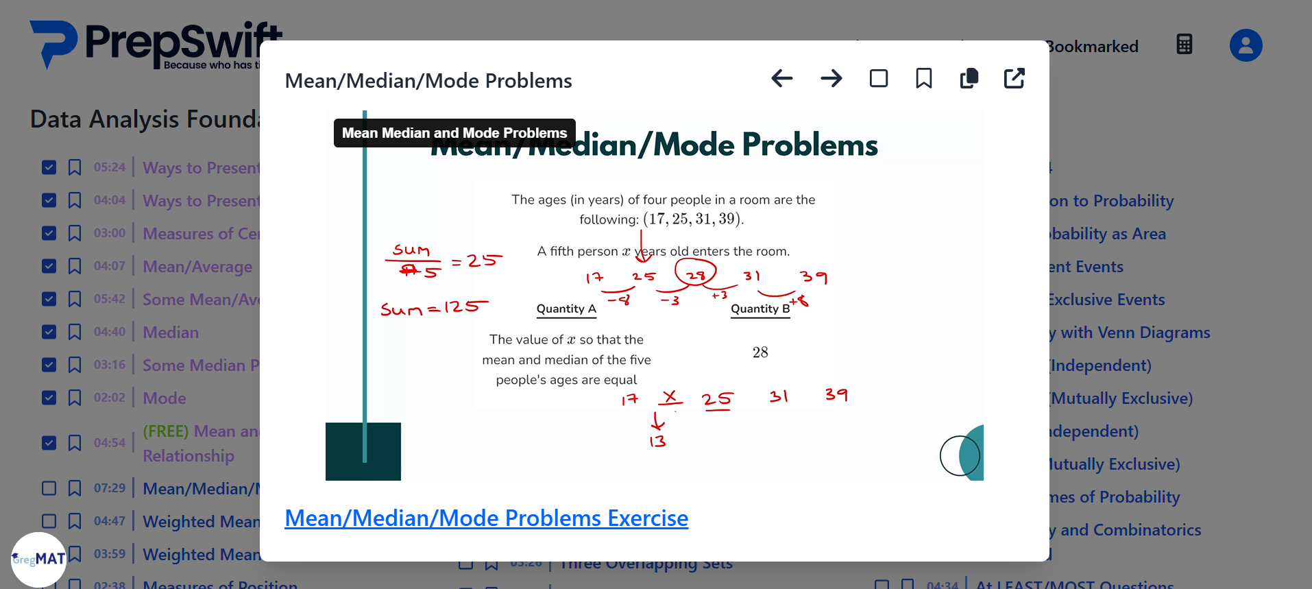 (13+17+25+31+39)/5 = 125/5 = 25