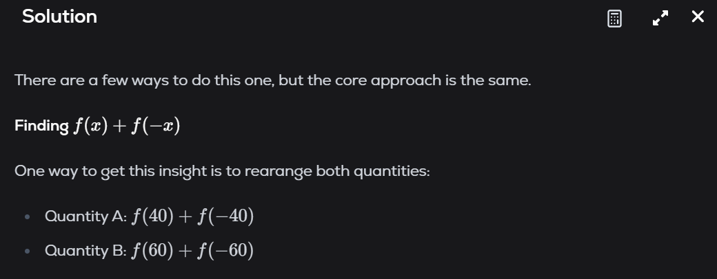 This is from the quant practice problems. Granted, I am super dumb at math and I don’t always understand the “leaps” taken in solving a problem, but it looks to me as if the solution is for a different problem. (The entire rest of the solution goes on these quantities.) Or can you actually rearrange quantity A and quantity B this way?