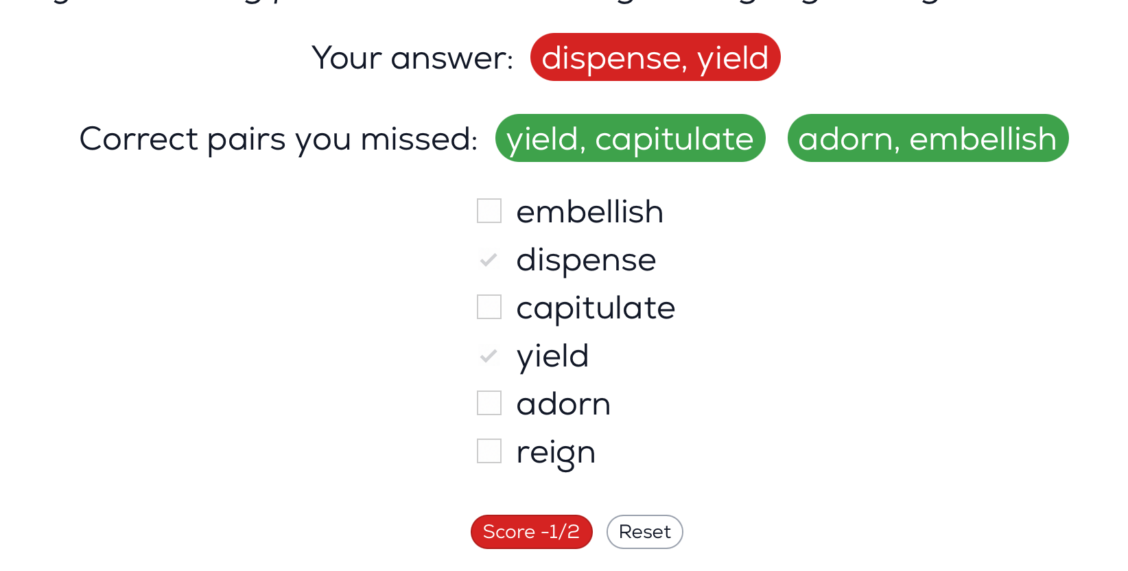 I’m confused about the distinction between “yield” and “dispense.” Both seem to mean “produce” or “give out,” so I’m not sure why they wouldn’t be considered synonyms.