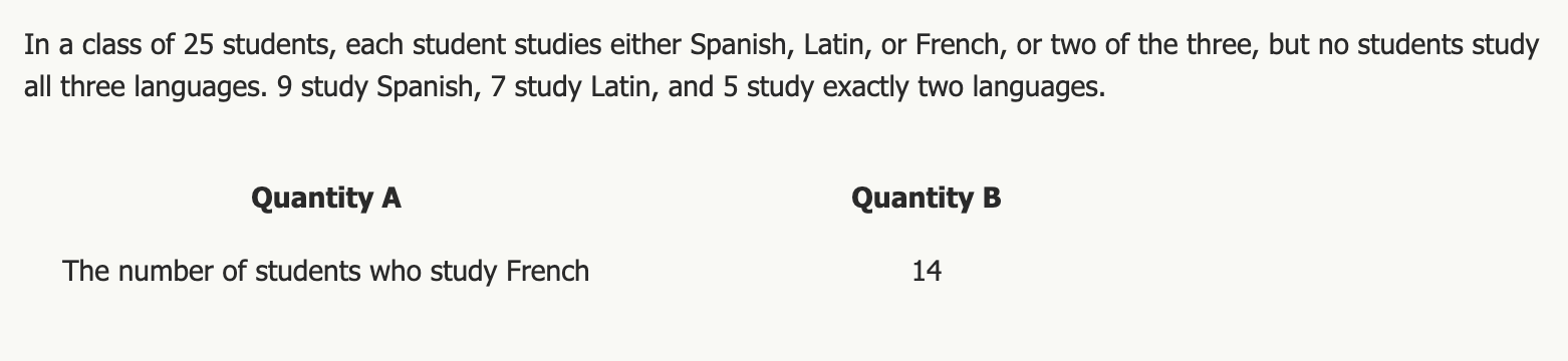 Hello, the attached question is from the Manhattan 5lb book. In this question, I noted that they never specified that “none” = 0. So I created two cases, one where none = 0 and therefore QA = 14, and another case where none = 9 and therefore QA = 0. Consequently, I put Need More Info.