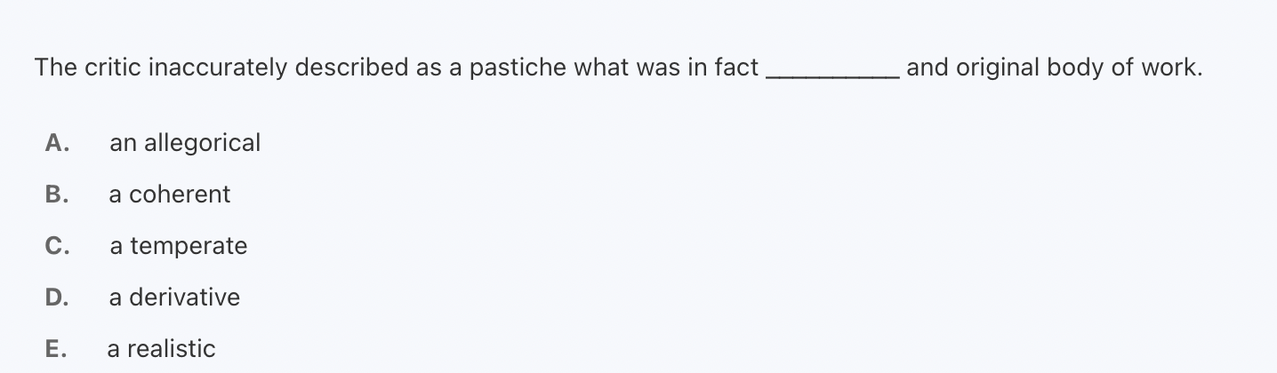 Can someone explain how B is the right answer? An unoriginal piece of work can still be coherent? Don’t we need a word close in meaning to “original”?