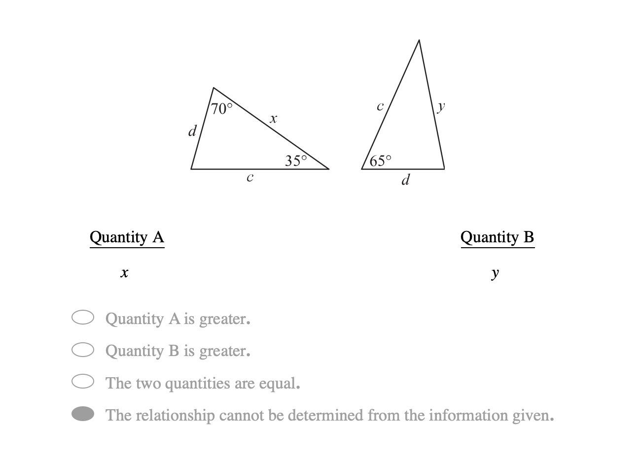 Is the property of largest angle opp largest side applicable for comparison of 2 different triangles too? I remember there was a question on GREGmat, but am unable to find it