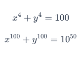 eq 2 — (x^4)^50 + (y^4)^50 = (10^2)^50