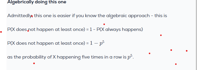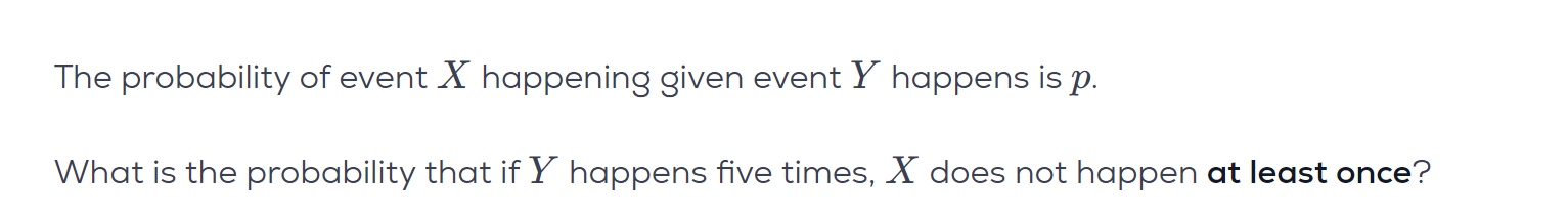 For Question number 8 here: Quiz - GregMat. The algebraic solution says that the probability for x always happening is p^5. How did we calculate this? p is supposed to be the probability of x happening given that y happens right?