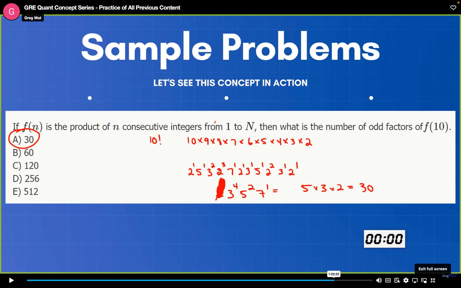 On prime factorising, you get the values as 2^8 * 3^4 * 5^2 * 7^1 and since we are calculating only the odd factors, we can drop 2^8 and just calculate (4 + 1)(2 + 1)(1 + 1) which gives you 30 (option A, as what is circled in the screenshot).
