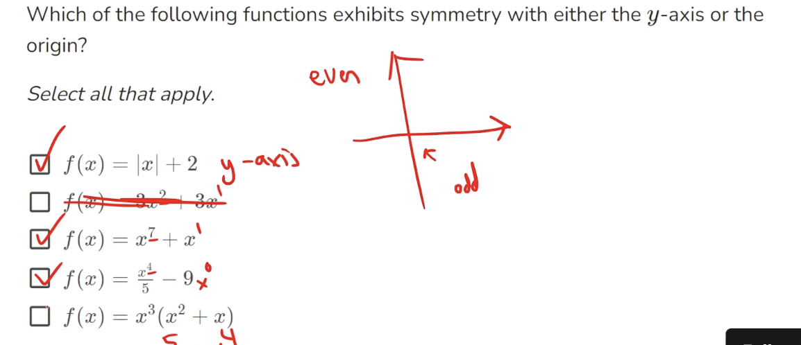 the power of x is one and we can say that the power of 2 is 0(cause x to the power 0), so won’t that be a mixed function and not a function that has symmetry with the y axis