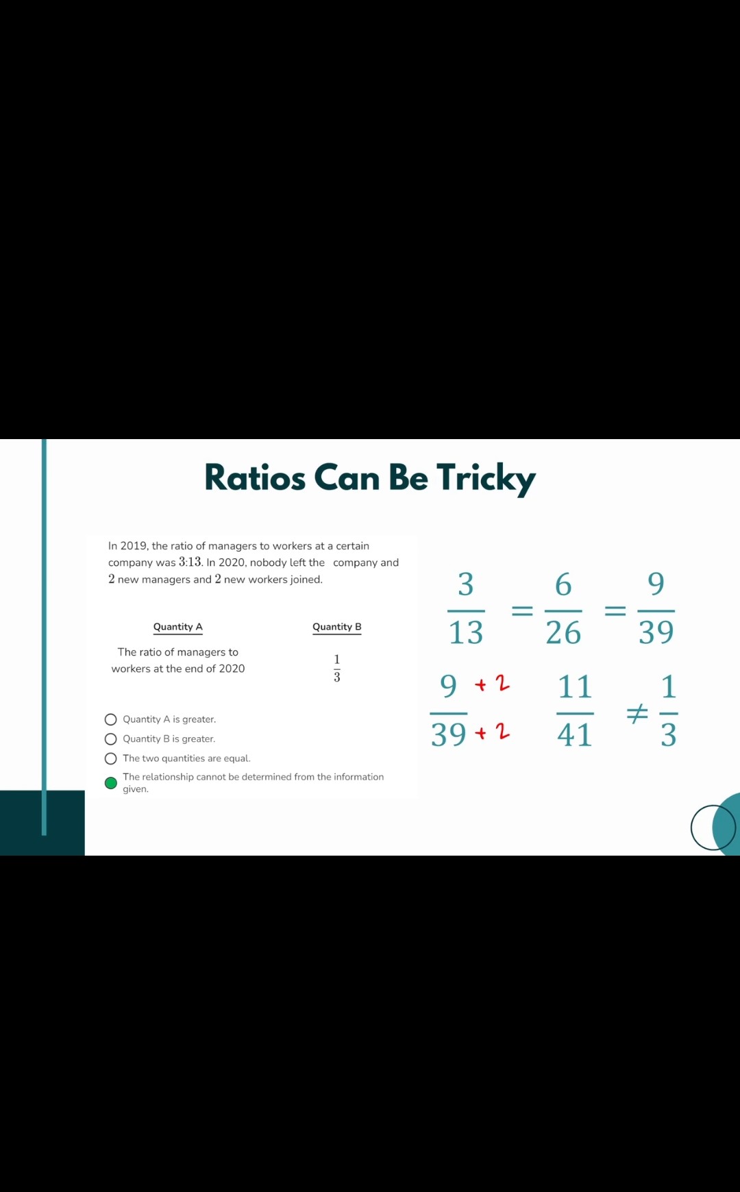 Why then isn’t the same case for managers/workers? Just because of this “originally a basket contains two apples six mangoes”?? I know I am sounding dumb but I 'm just confused when to compare or to choose answer D