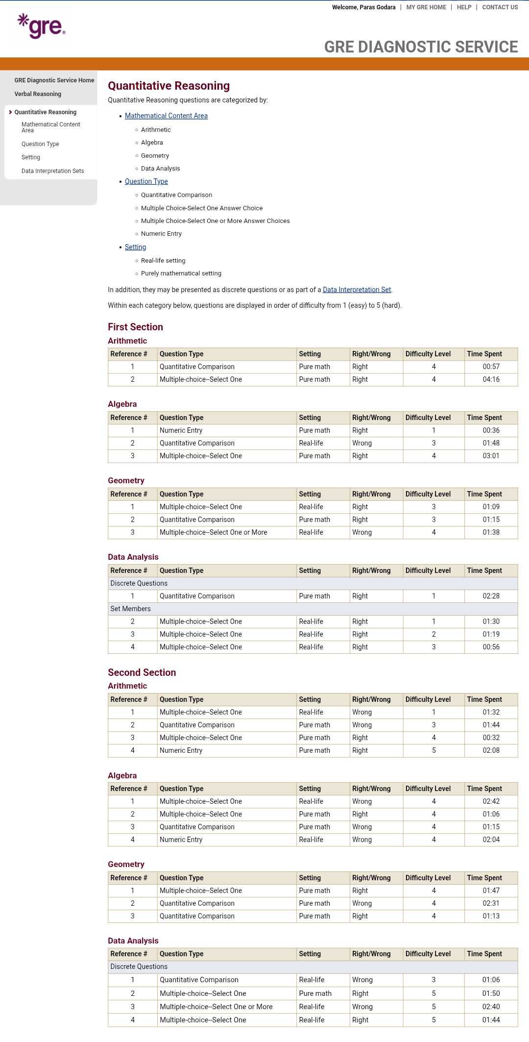 Diag reports rarely inform study planning - you need to attack each area of GRE skill.