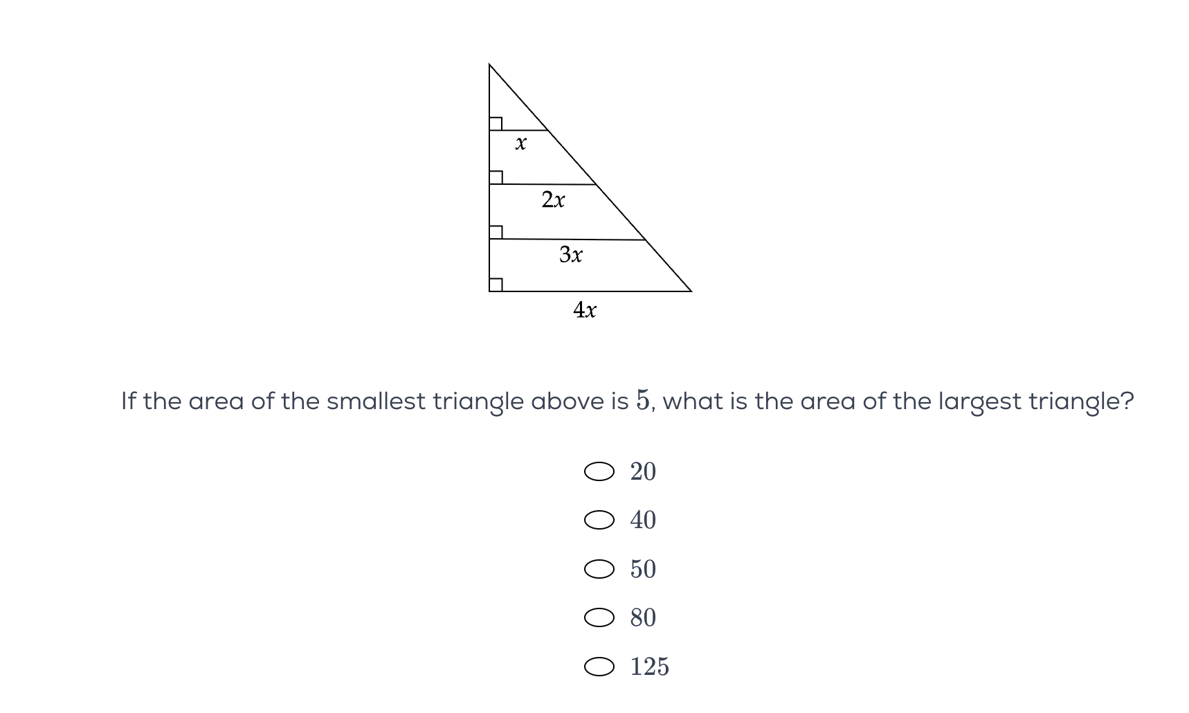 how are you supposed to be able to solve this problem? Even though the triangles are similar you don’t have a height to be able to multiply by?
