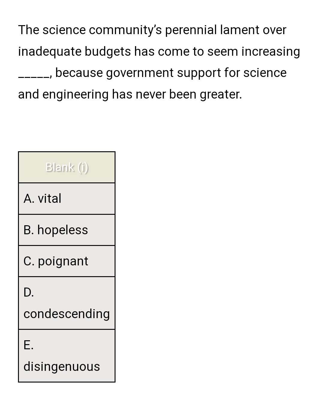 I thought hopeless would be the best choice because government is providing small budgets to the scientists!