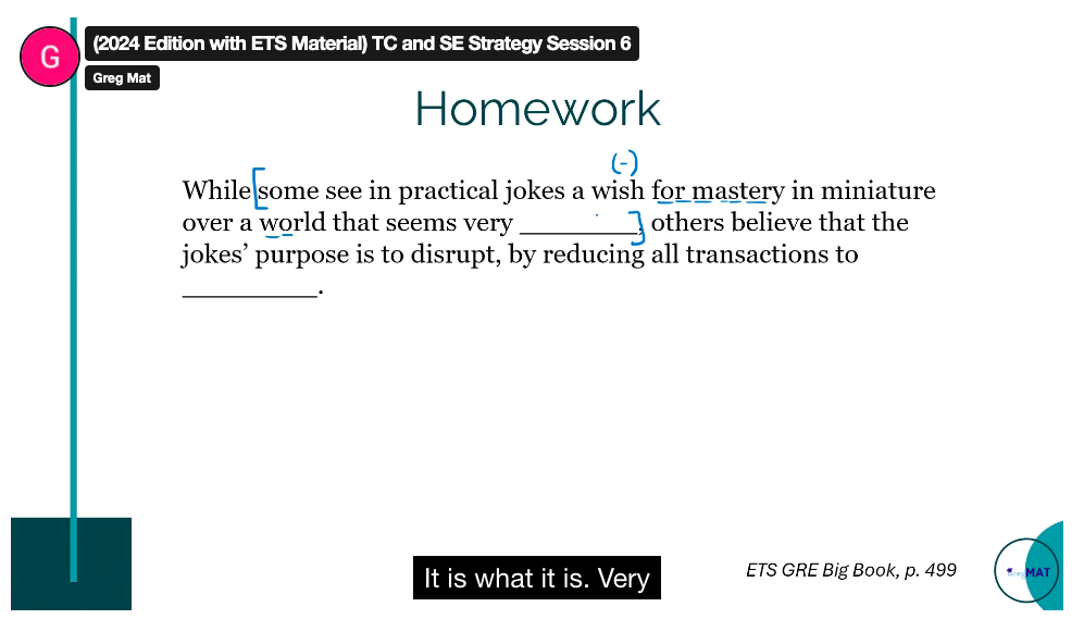 You’re absolutely right that these questions can feel difficult until you build the habit of breaking down the sentence structure effectively. What helps make the “math strategy” or any logical approach more consistent is starting with a breakdown of the ideas in the sentence. That means identifying which parts influence each other, and how they’re connected.