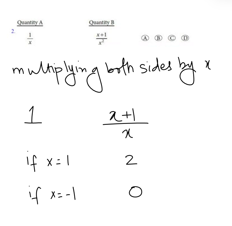 But since you multiplied x on both sides you made Quantity A a constant value of 1 which is wrong. That won’t work for any negative x value.